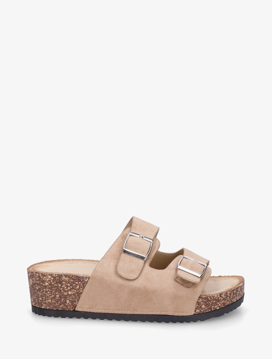 Claquettes en suédine à semelle effet liège - Caramel