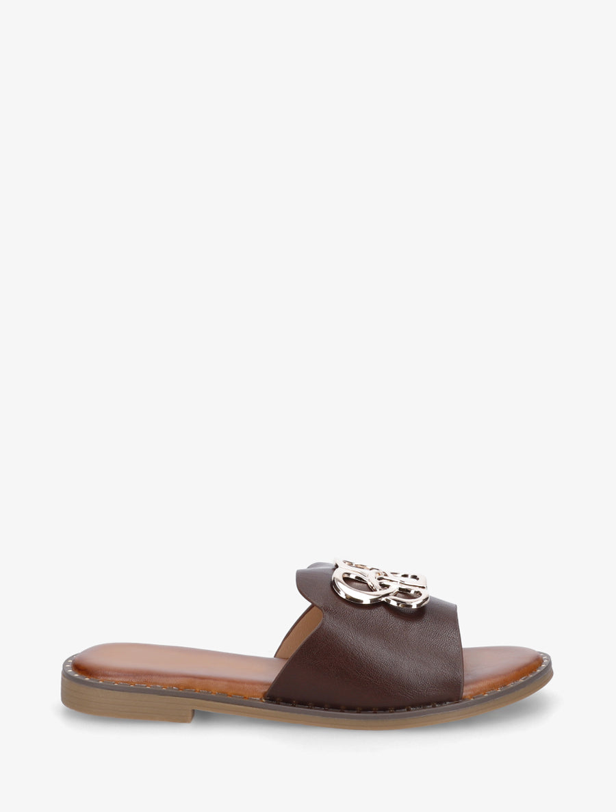 Sandalias planos con hebilla decorativa - Marrón