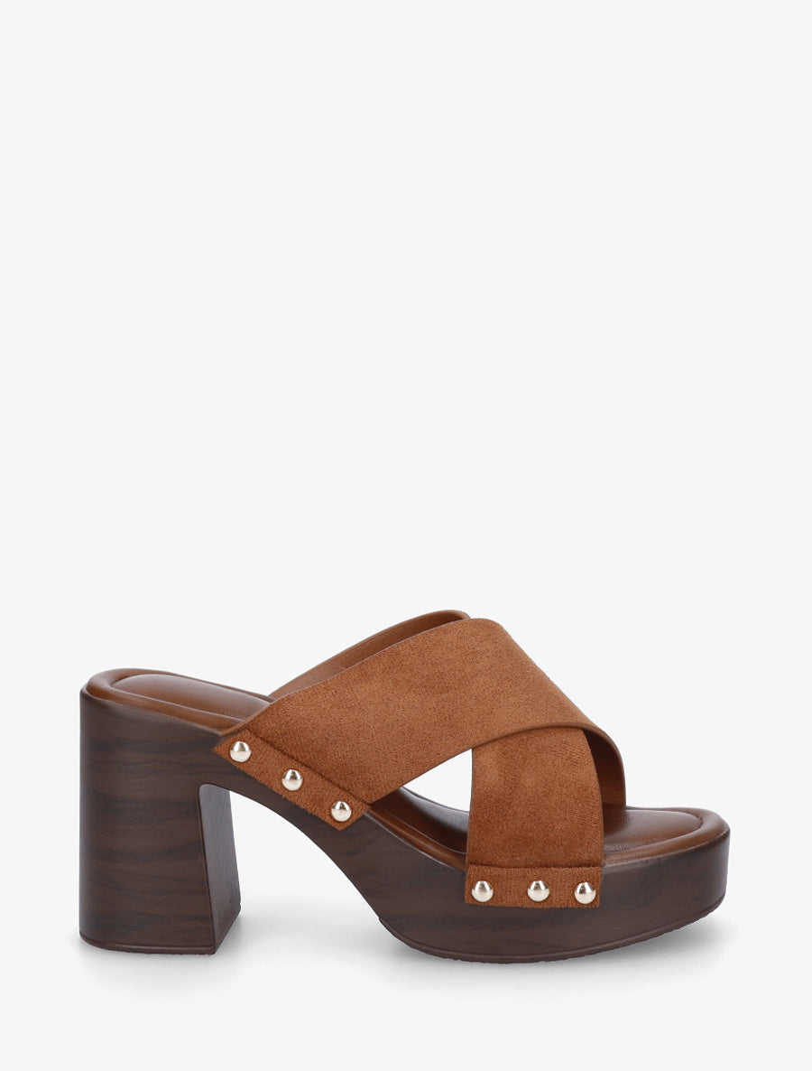 Zapatos destalonados con tacón imitación madera y ribete de ante sintético - Camel