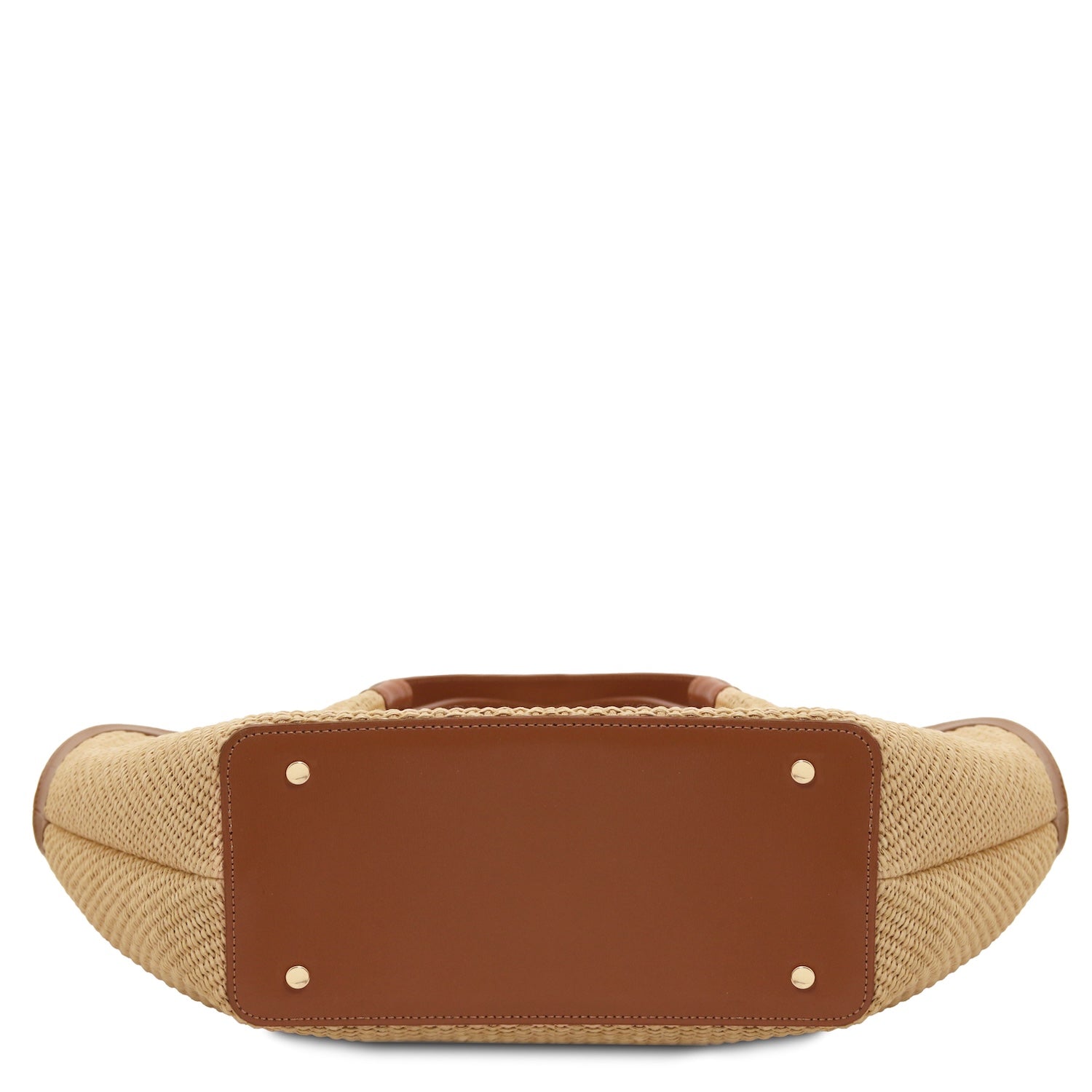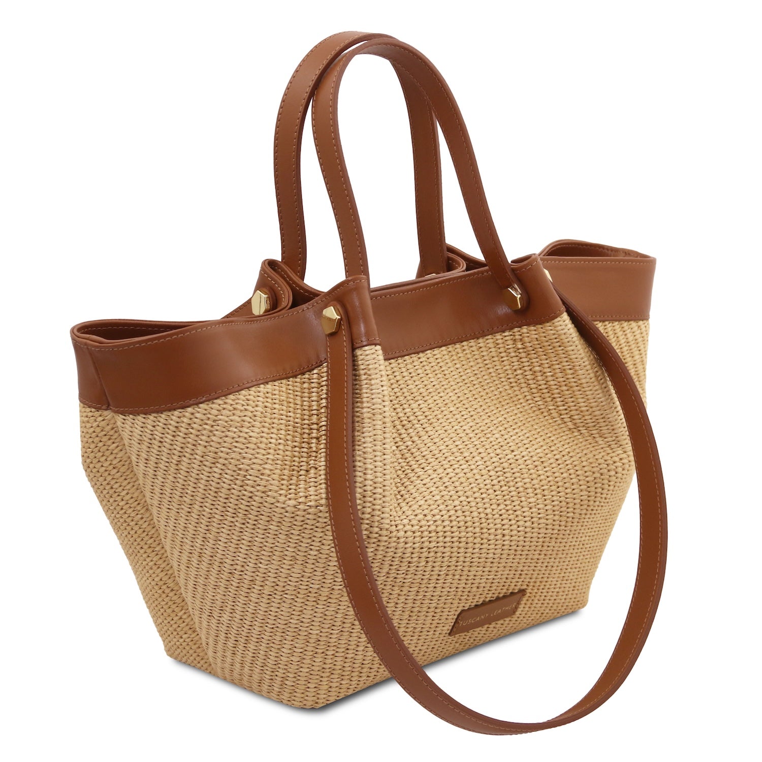 Material: Rafia con ribete de piel italiana lisa; forro de poliéster.